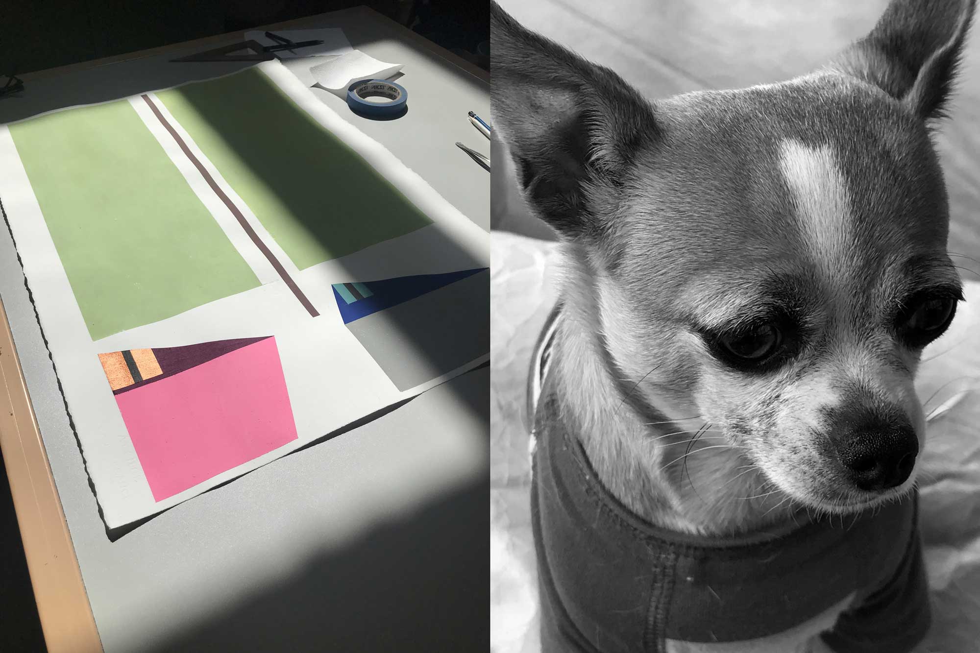 Near the end of the military draft finds him for two years in the French countryside sharing an evening art studio with a former Dutch assistant of JEAN Fautrier, a French artist having a long Modernist reputation at the time. After discharge, Austin returned to school to complete his degree of a MFA in art/design, married another Auburn grad and worked in a NYC graphic design job with Norman Affiliates Ltd.. Following this immersion in practice, Austin was recruited by a Birmingham agency to serve as the art director of Avondale Mills, the largest textile mill in USA: Monthly NYC fashion photo shoots “Come live with me in Avondale” were supervised with the clothes designer and designed by Austin to appear in fashion and design magazines. After a few years of practice Austin was honored with the Best of Show award of the Birmingham Art Directors Annual Exhibition. Thereafter, an academic trail was followed with university teaching posts at the University of Georgia, Indiana State, and NC State, ending in 1999 retirement as Professor Emeritus of Design.